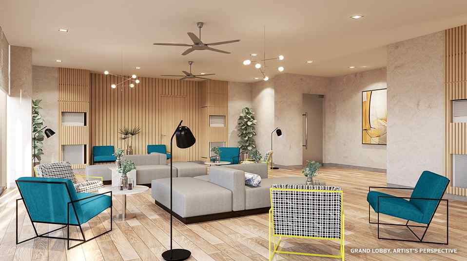 Lounge at Now Residences' vibrant lobby and look forward to a great day ahead.